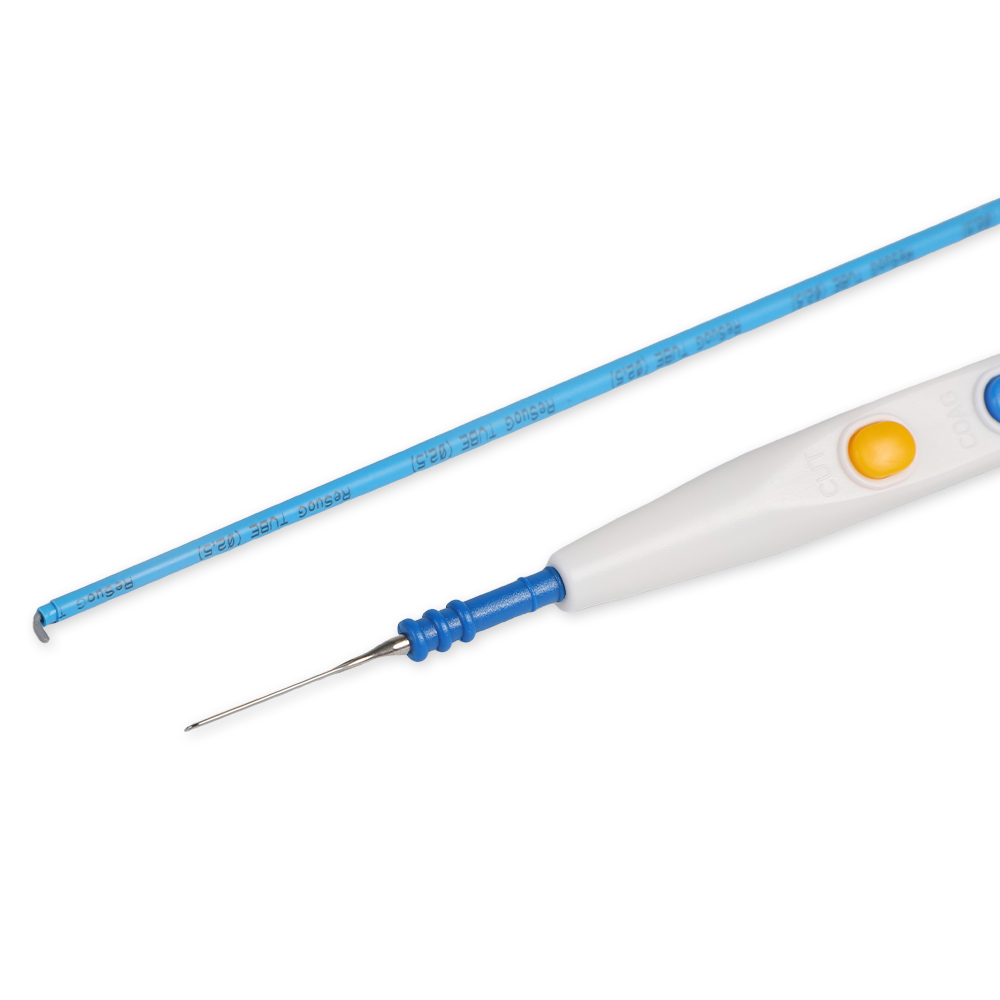 • Lápiz de electrodo quirúrgico desechable tipo interruptor manual de acero inoxidable con revestimiento antiadherente y hoja de gancho de 250 mm